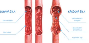 Ve zdravé žíle je krev kromě svalů poháněna směrem k srdci i žilními chlopněmi.