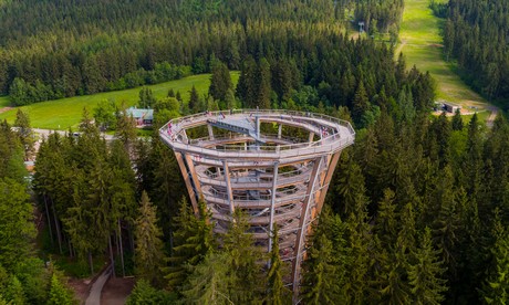 Stezka korunami stromů Krkonoše v Janských Lázních je otevřena denně po celý rok.