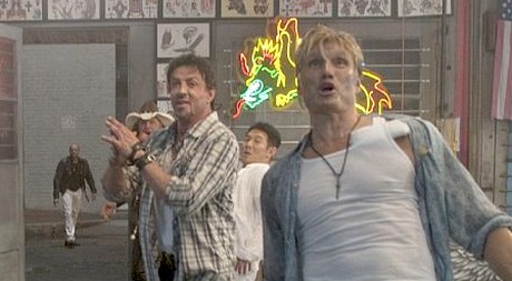 Tvář, svaly a zbraně ovšem ve snímku postupně ukáží také ikony tohoto filmového žánru. Jsou jimi Dolph Lundgren, Arnold Schwarzenegger, Bruce Willis a Mickey Rourke.