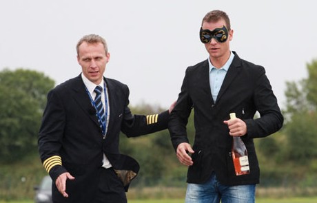 Vlasta Hájek první den natáčení absolvoval bez partnerky Zuzky Belohorcové. Cíl cesty byl tajný, i on je tedy k letadlu doprovázen se škraboškou na obličeji.