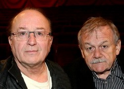ryze rokenrolové písničky tam jsou ve skutečnosti tak maximálně tři,“ upozornil autor libreta Karel Šíp (na snímku vpravo je spolu s Petrem Jandou).