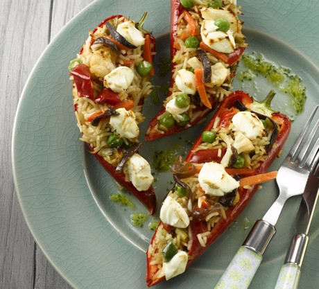 Orientální oběd plný zeleniny - Plněné papriky Asia
