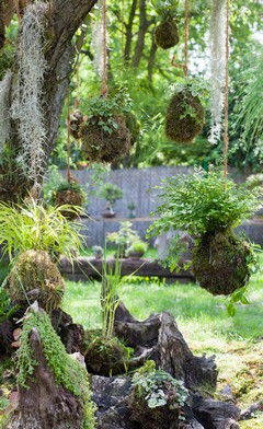 Novinkou a zajímavým osvěžením výstavy byly i trávníkové koule zavěšené na stromě či lucerničky, které při noční procházce japonskou zahrádkou osvěcují bonsaje.