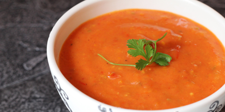 Letní polévka z rajčat, paprik a koriandru