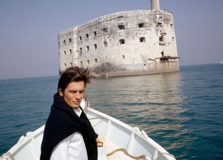 Alain Delon přijíždí k pevnosti Boyard ve filmu „Dobrodruzi“.