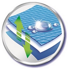 oblečení vyrobené z vláken, které díky speciálnímu tvaru a povrchové úpravě zabraňující absorpci vlhkosti do vlákna a transportují vlhkost pryč od pokožky.